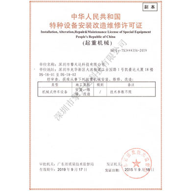 特種設備安裝維修許可證