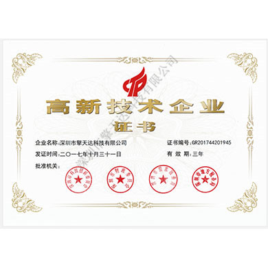國家級高新技術(shù)企業(yè)證書