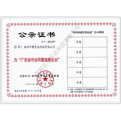 廣東省守合同重信用證書